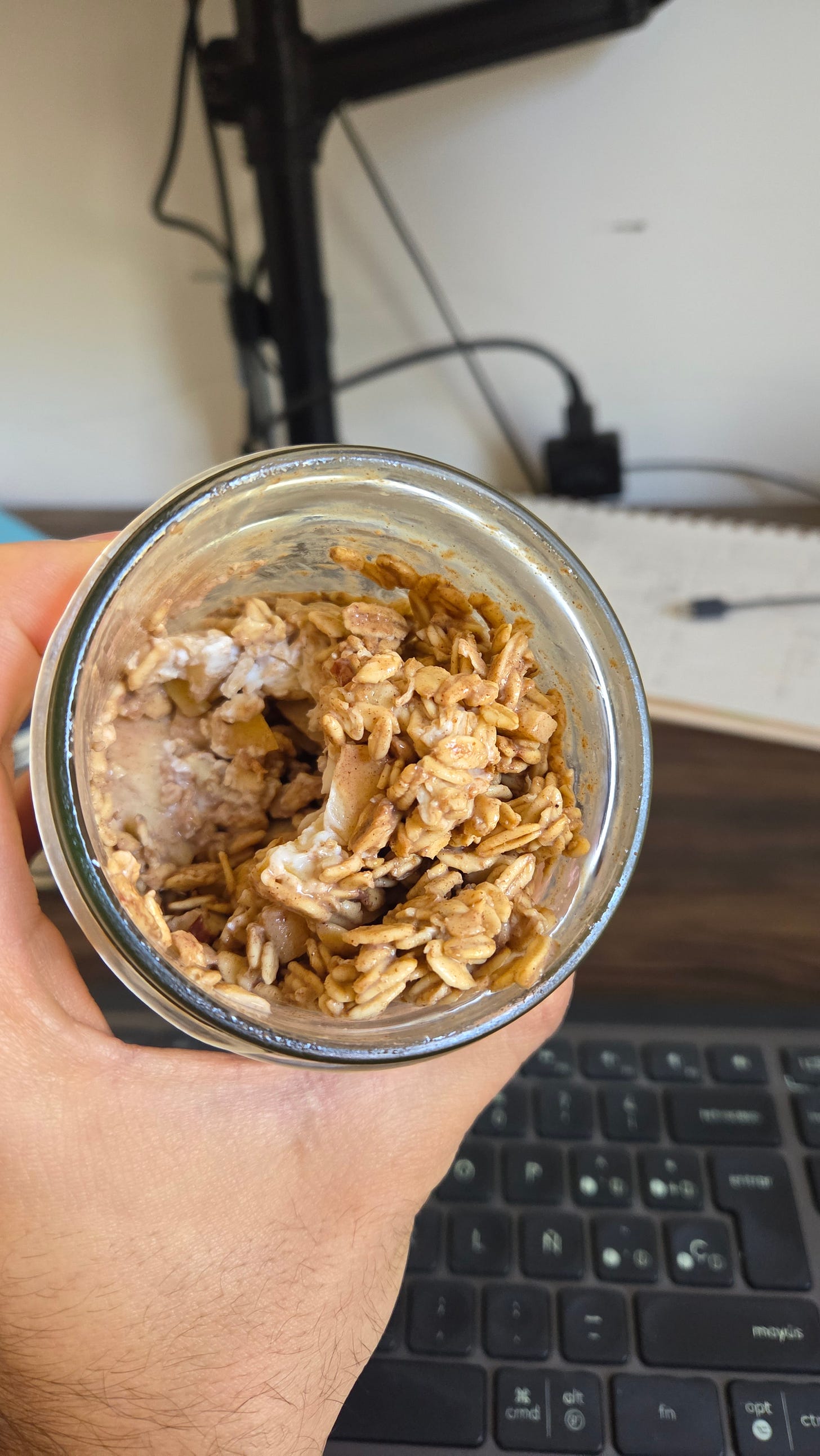 En la carta del 19 de febrero te compartí una receta de avena que me ha ayudado a no perder peso, y Din_Dgm comentó que quería ver una foto. Esta semana te traigo una receta similar, pero en lugar de ser choco-banana, es sabor pay de manzana.